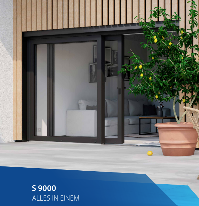- S 9000: Kombiniertes System für Fenster, Türen und Hebeschiebetüren, hoher Wärmeschutz, geeignet für Passivhäuser